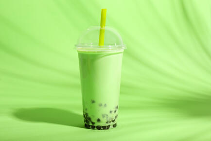 [Doman Tea] A luxurious blend of jasmine green tea and fresh ovibos milk, starring brown sugar-sweetened tapioca pearls. Be sure to shake it...if you wish to continue living your repetitive existence.