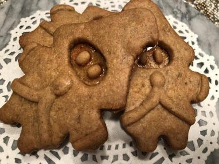 [Ginger Cookie] - Neither too sweet nor too overwhelmingly spicy, these tasty treats cut into whimsical black mage shapes have just the right balance of spices — ginger, cinnamon, cloves, allspice, and nutmeg — and a wonderfully buttery crisp texture complemented by a brown sugar and maple syrup glaze.