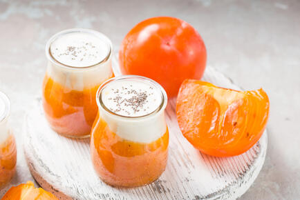 [Persimmon Pudding] Chilled blended persimmon and sweet yoghurt, served in small circular cups. If the taste doesn't make you smile, nothing else will.